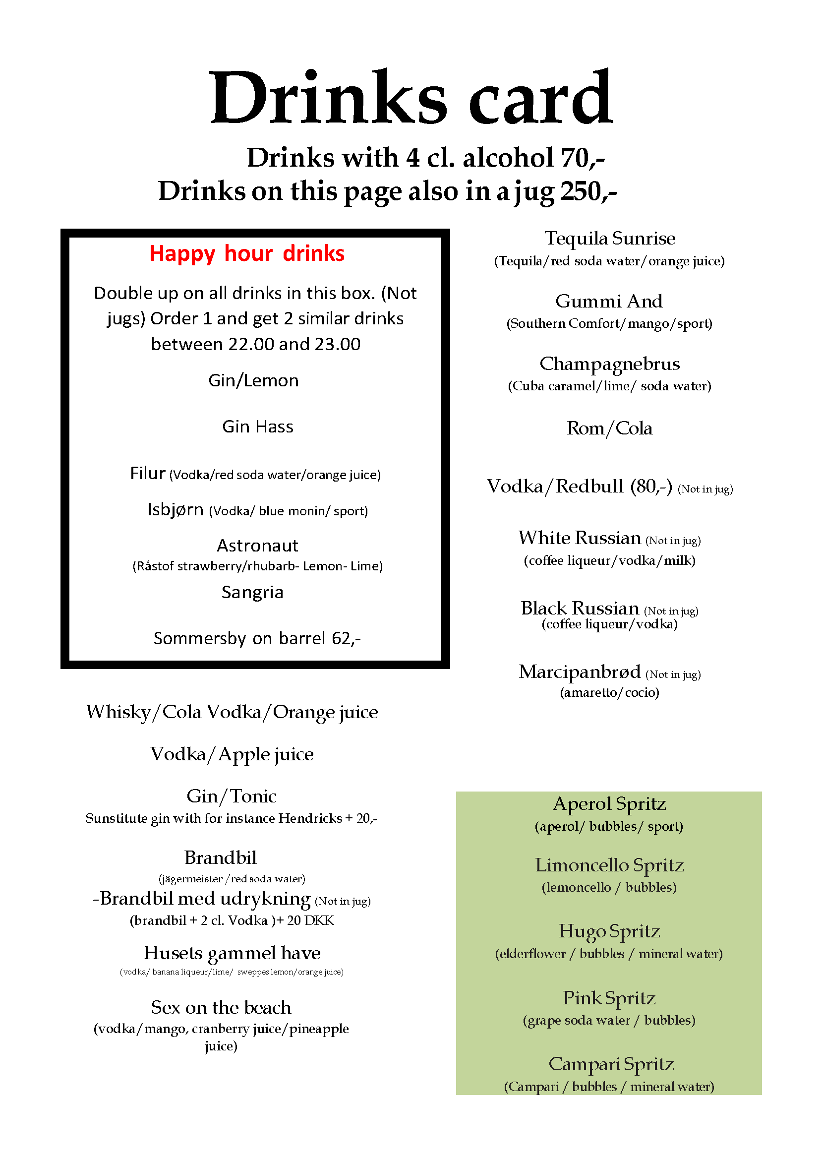 HAPPY HOUR kl. 22.00-23.00 -buy 1 get 2 on all draft beer and wine and seleted drinks