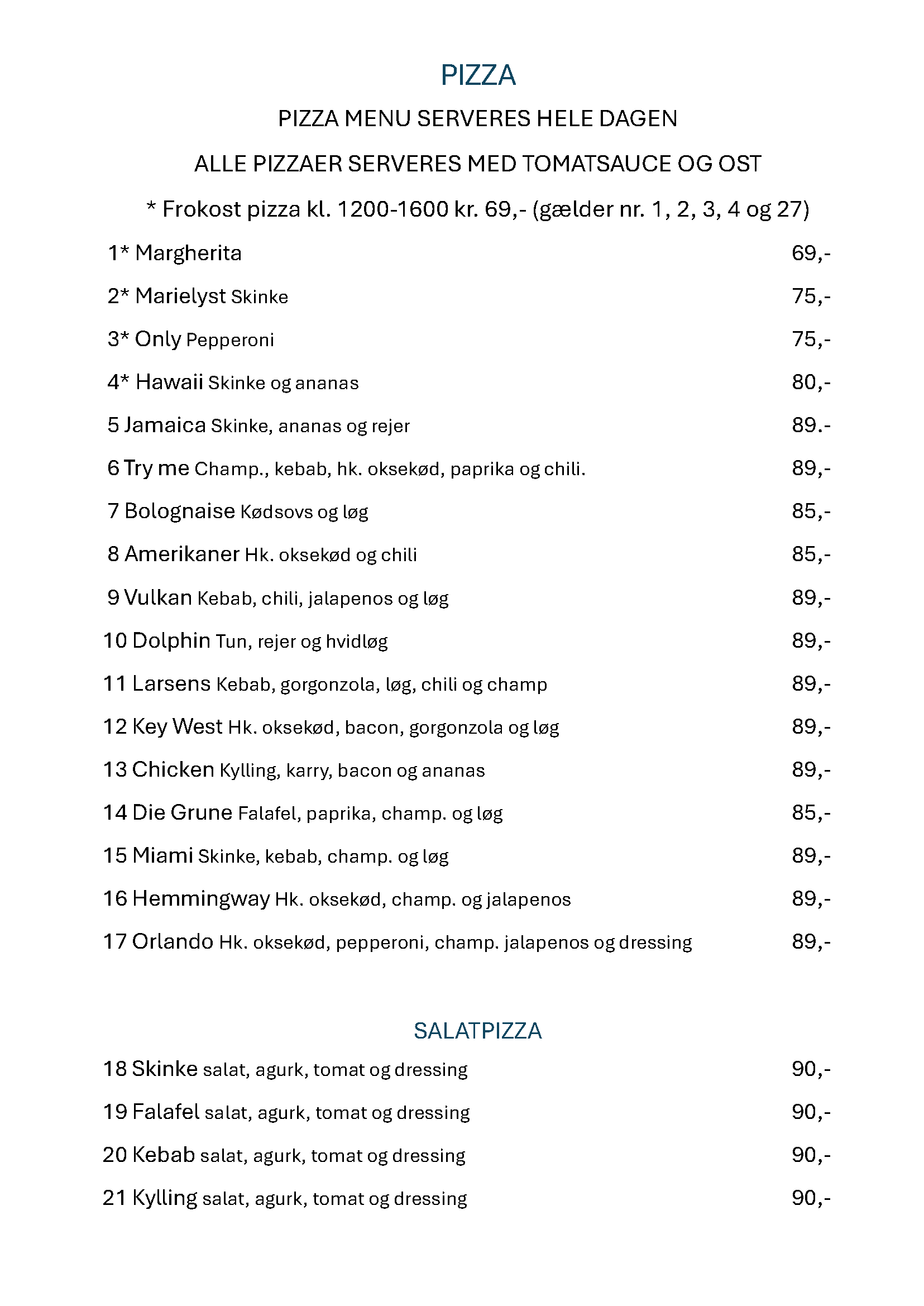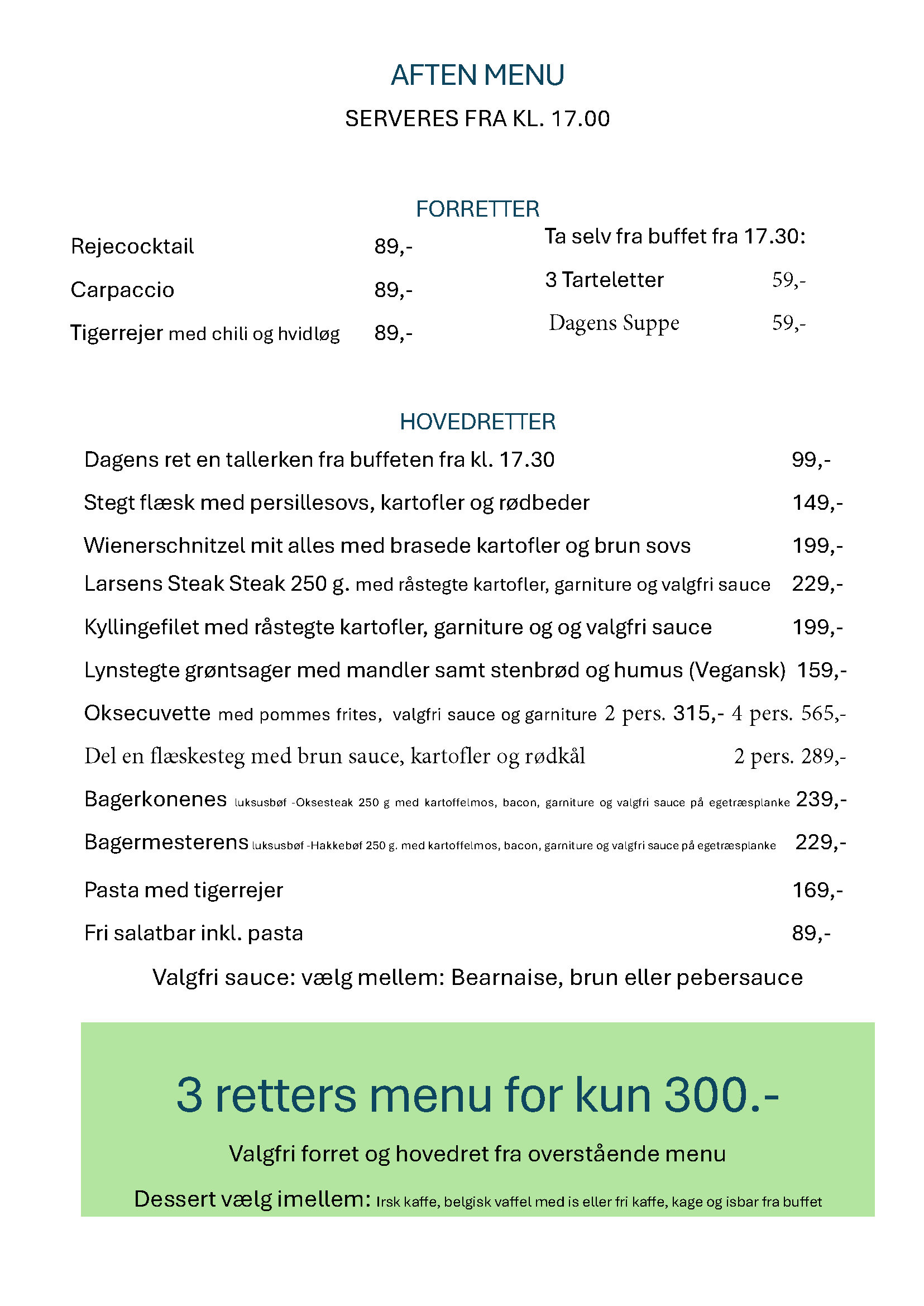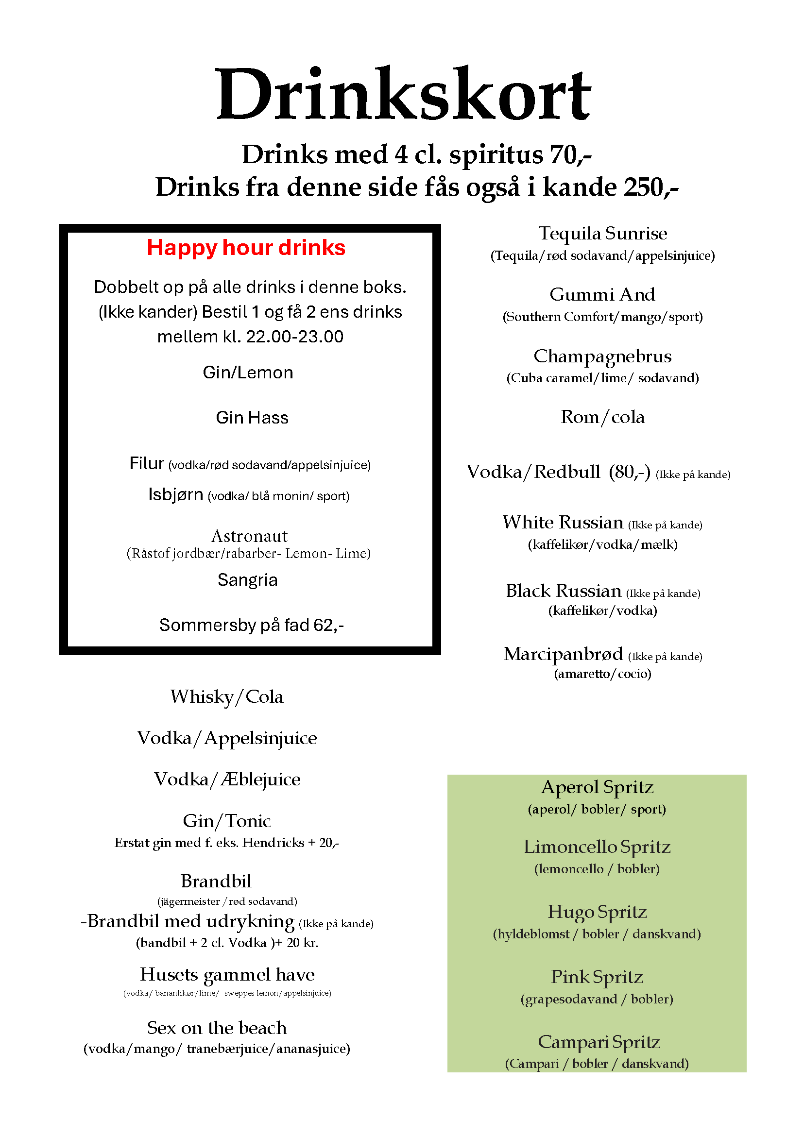 Menu Se vores menu Velkommen til Resaurant Larsens Plads Husk bestilling i baren HAPPY HOUR kl. 15.30-16.30 -Dobbelt op på fadøl, vin, sangria og GT HAPPY HOUR kl. 22.00-23.00 -Dobbelt op på fadøl, vin samt udvalgte drinks (se drinkskort)
